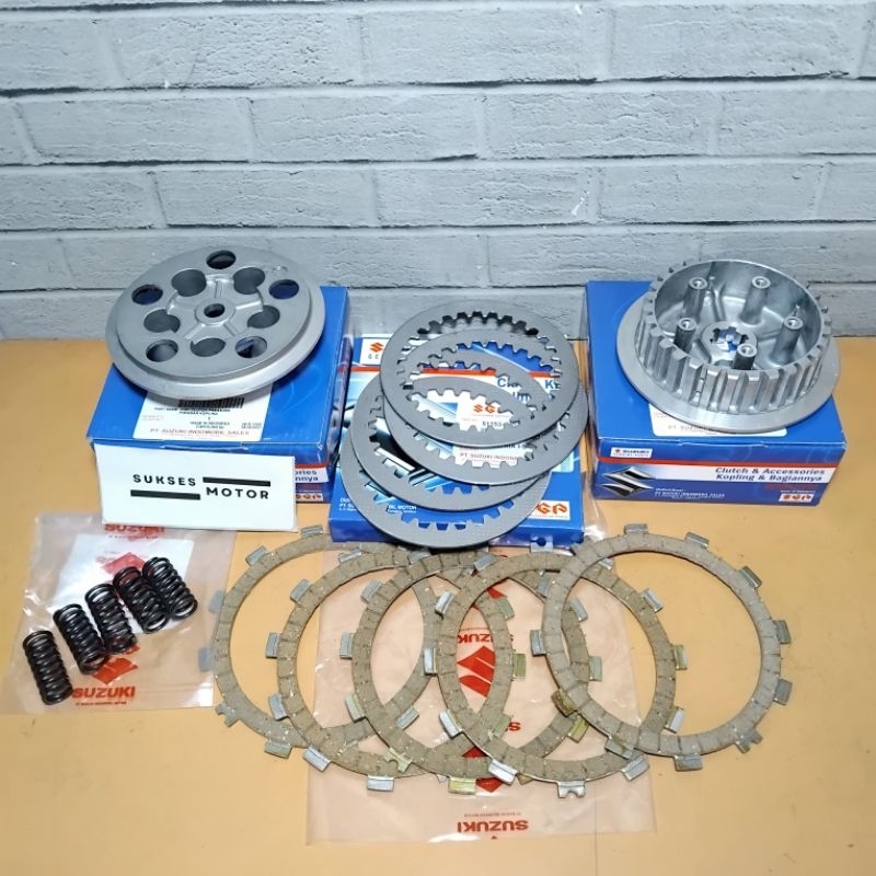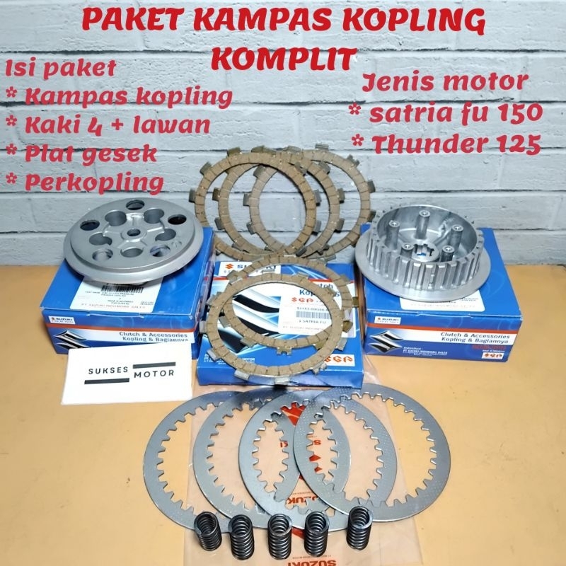 paketan kampas kopling komplit suzuki satria fu 150 old new, thunder 125 ( kampas kopling, kaki 5 + lawan, plat besi gesek, perkopling )