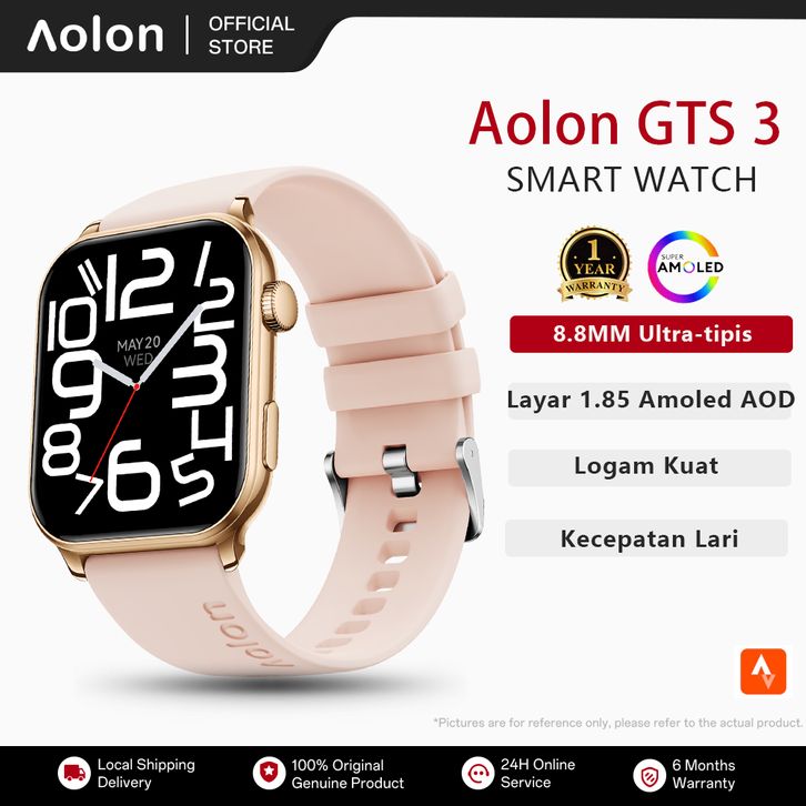 SmartwatchNEWAolon GTS 3 SmartWatch Layar 1.85 Amoled AOD Wanita 8.8MM Ultra-tipis Catatan Haid Kecepatan berlari