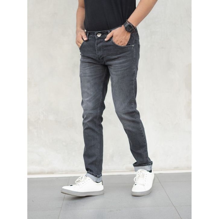 HEY MAN CELANA JEANS DENIM PANJANG PRIA SLIMFIT STRECH - BLACK STONEWASH