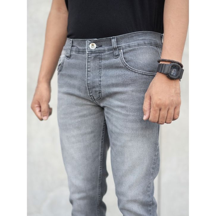 HEY MAN CELANA JEANS DENIM PANJANG PRIA SLIMFIT STRECH - GREY STONEWASH