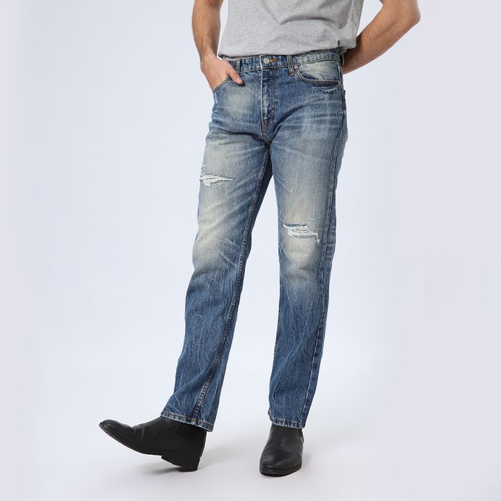 EDWIN JEANS - 801 REGULER FIT HANDCRAFTED JEANS BLUE AGES DESTROY CELANA DENIM PRIA