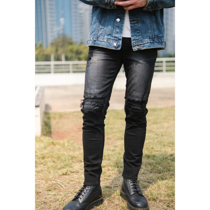 WEIRD JEANS - BLACK SERIES "VINTAGE BLACK" - CELANA JEANS PANJANG PRIA SLIMFIT RIPPED JEANS