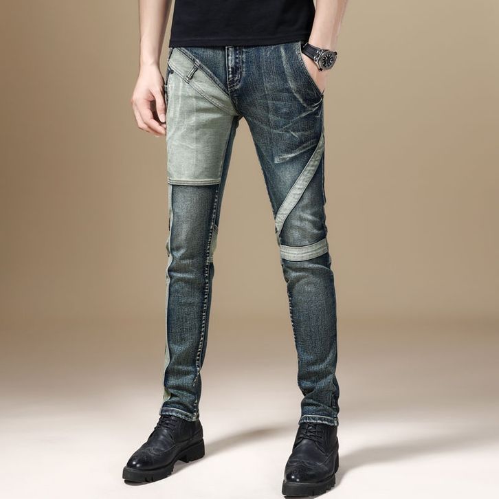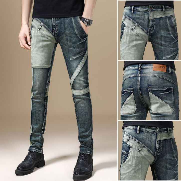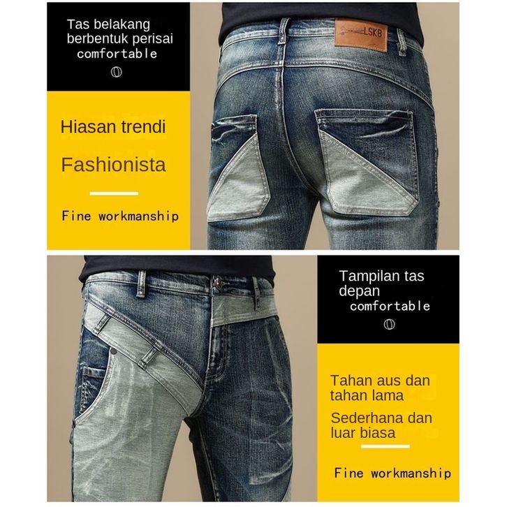 CELANA JEANS PRIA/IMPORT/COWO/KEREN/RETRO PATCHWORK MEN'S TRENDY JEANS ALL-MATCHING SLIM FIT STRETCH