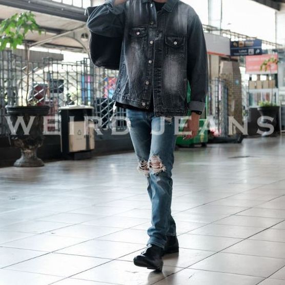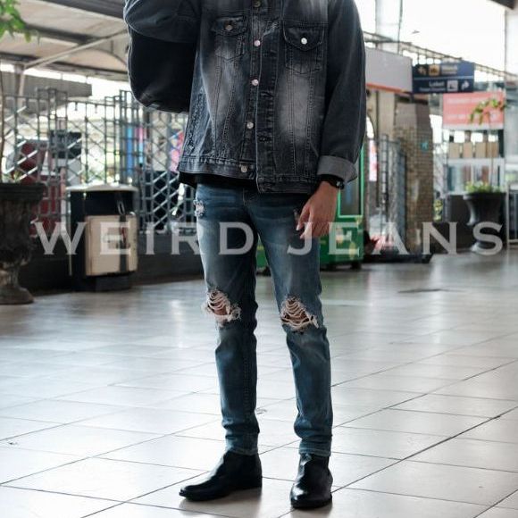 WEIRD JEANS - VARCITY BLUE - CELANA JEANS PANJANG DENIM PRIA SLIM FIT STRECH RIPPED FADING WHISKER