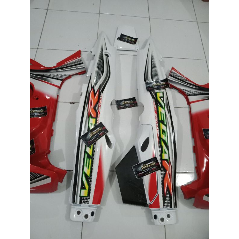 Cover Body Belakang Vega R lama Plus Sayap Luar Dalam & Bok Aki Set Striping Merah Putih Tahun 2004-2005
