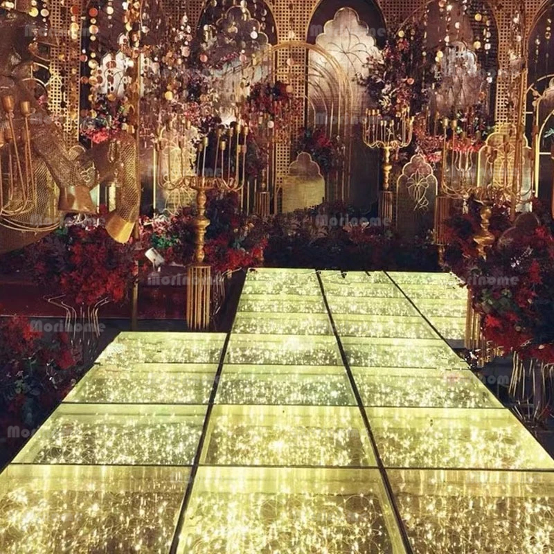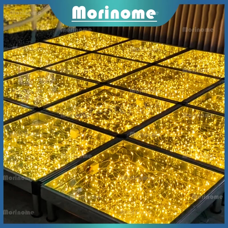 ❣️GARANSI&❣️1 SET ISI 4 LAMPU PANGGUNG LANTAI KACA TEMPERED GLASS STAGE LIGHTING CAHAYA HANGAT LED STARLIT 60X60CM DANCE AND WEDDING FLOOR YMOC