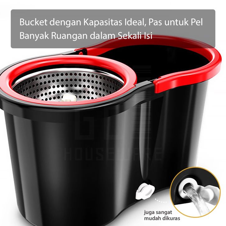 HUGO Alat Pel Lantai Ultra Mop Kano - PHUGO Alat Pel Lantai Ultra Mop Kanel Lantai Praktis Peras Otomatis Spin Mop Black