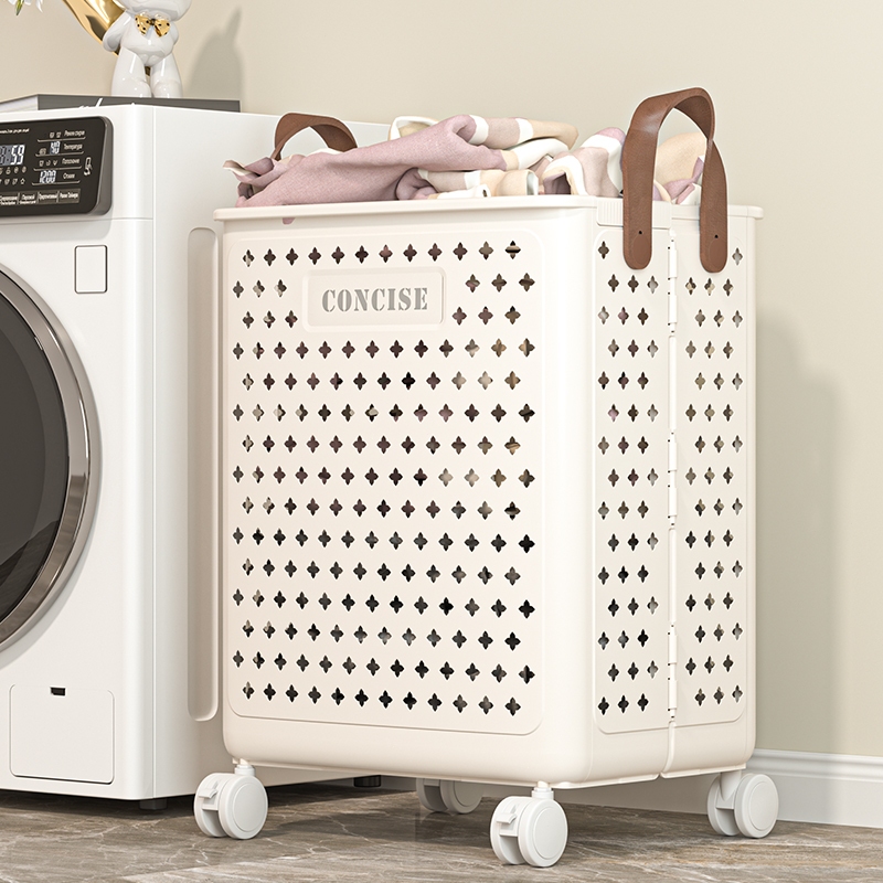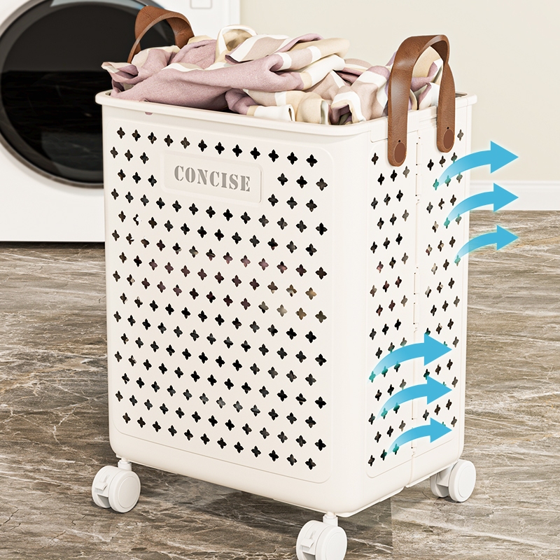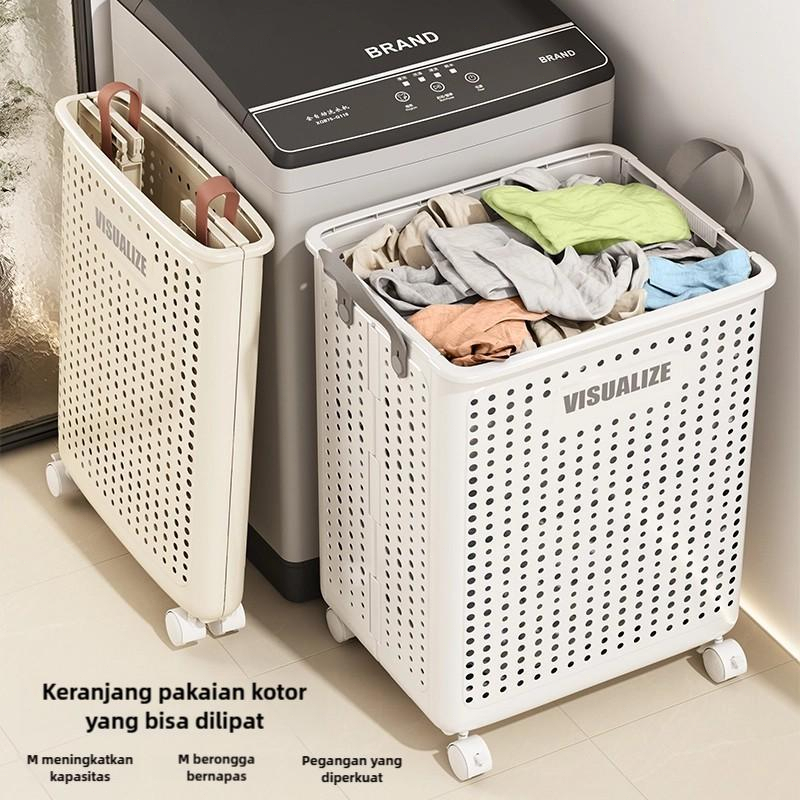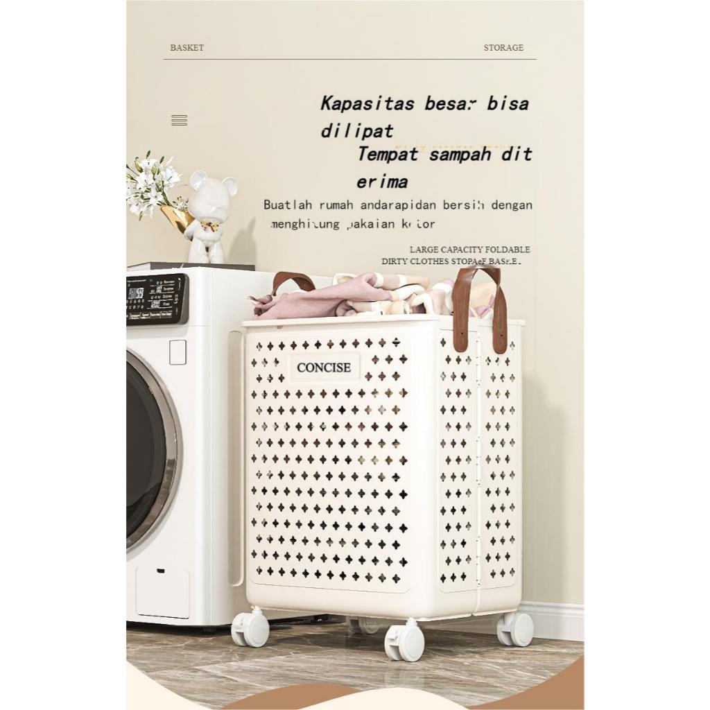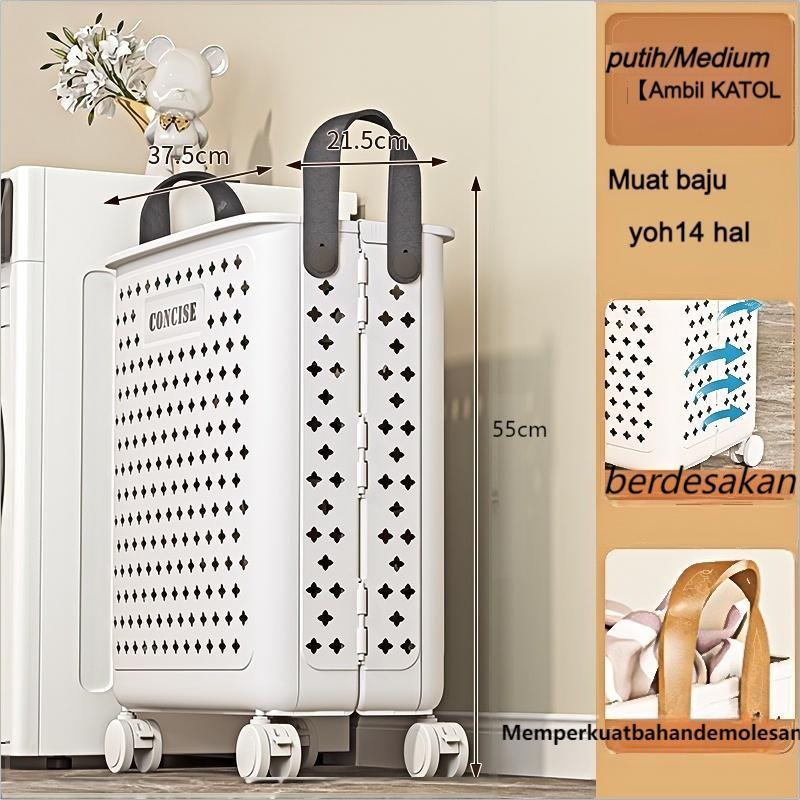 KERANJANG BAJU KOTOR LAUNDRY BASKET PLASTIK LIPAT DENGAN RODA KERANJANG PENYIMPANAN SERBAGUNA