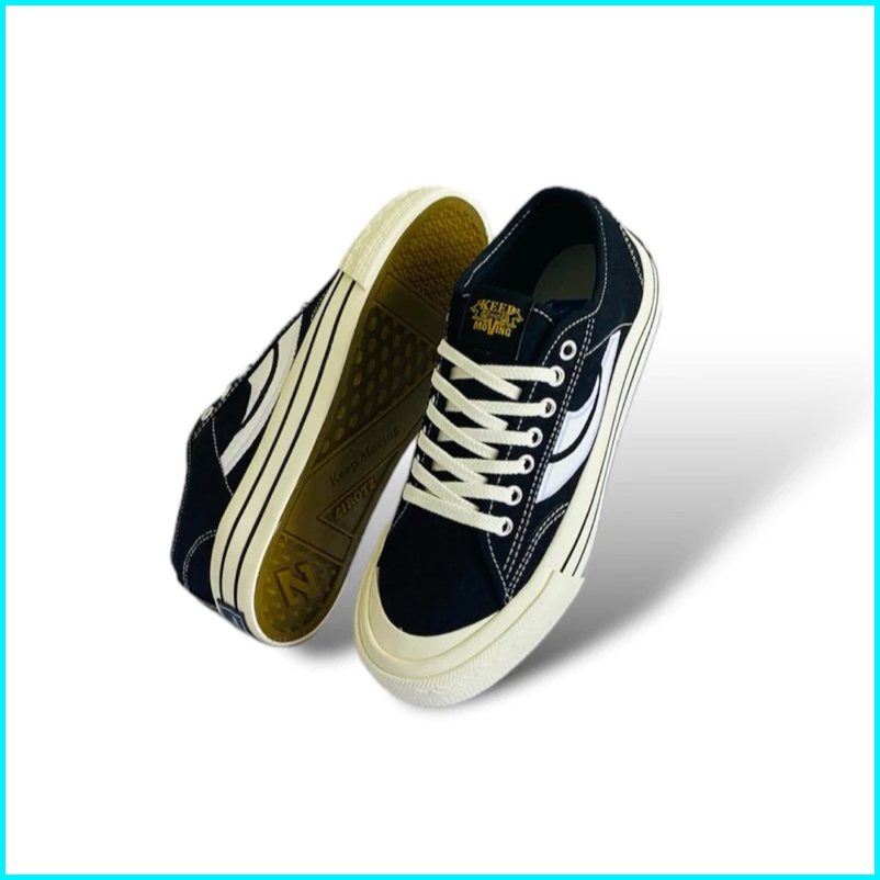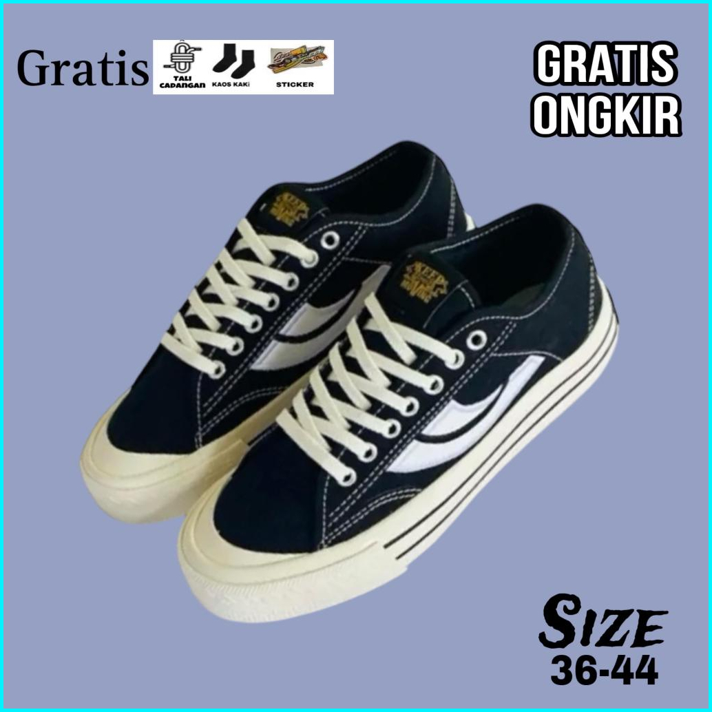 Sepatu Sneakers Pria Wanita Flexion Black White Sneaker Hitam Putih Kasual Seneakers Hitam Terbaru