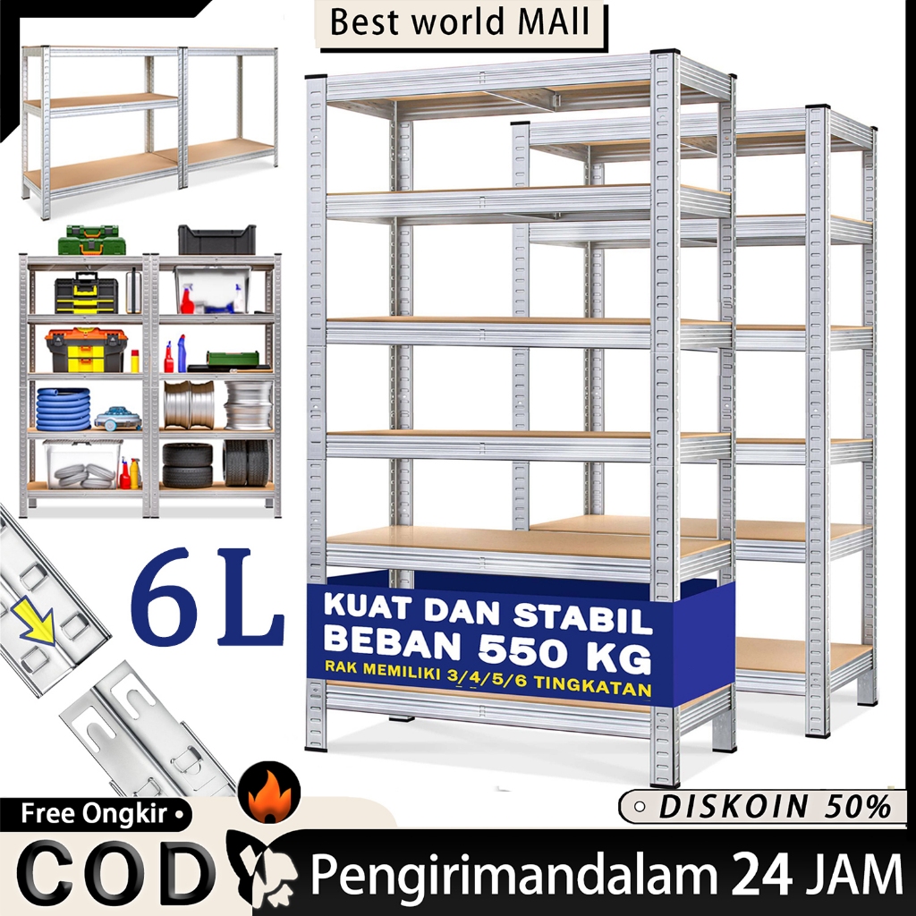 Rak Besi Rak Besi Siku Lubang Rak Susun Serbaguna Rak Gudang Rak Barang 3/4/5/6 Tingkat Rak Susun