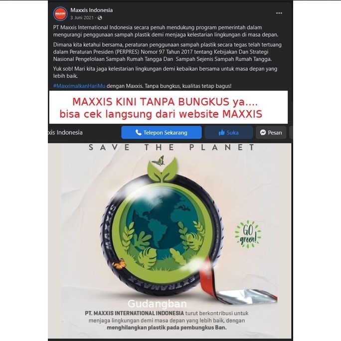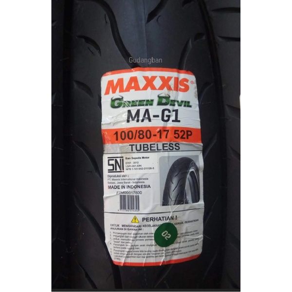 ( RING 17 ) Maxxis Green Devil 100 / 80 - 17 TUBELESS Original Produksi Baru MA-G1 FREE PENTIL