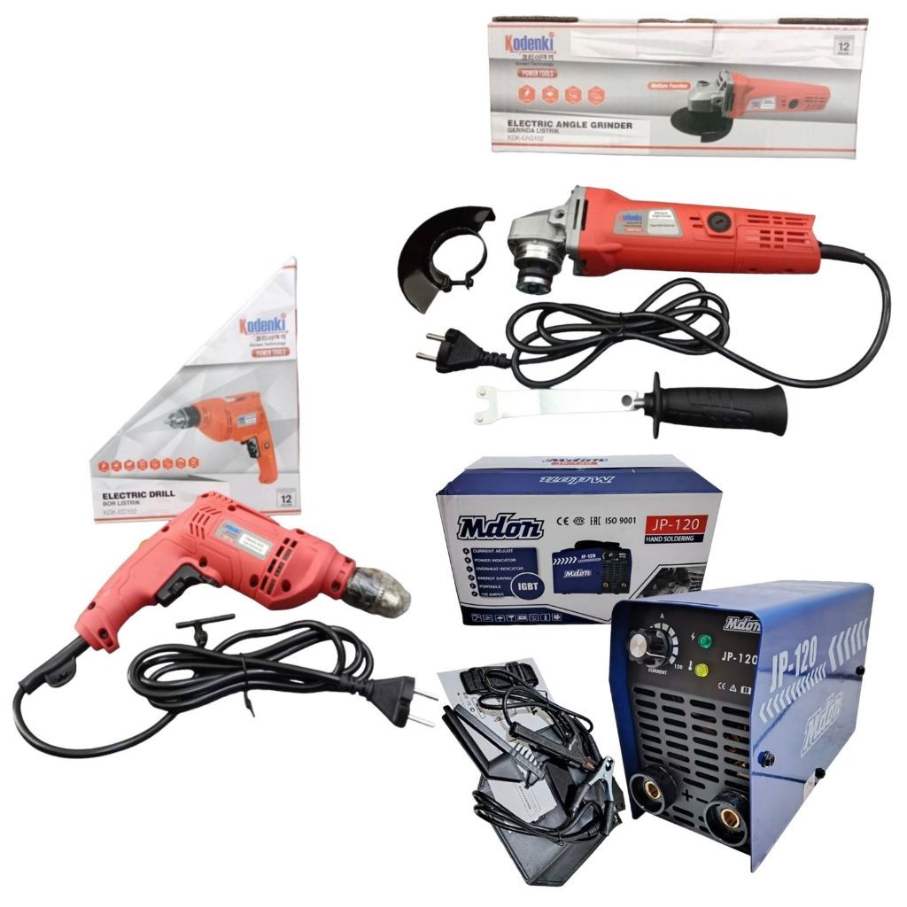 Paket Las Gerinda Bor mesin las 450 watt Paket komplit Gerinda 4 inch kodenki bor 10 mm besi kayu kodenki mesin las 450