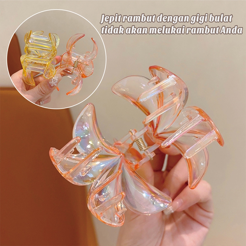 Vary Vase Jepit Rambut Wanita 8CM Dazzle Transparan Motif Bunga Kamboja Bahan Akrilik Gaya Korea Aksesoris Rambut