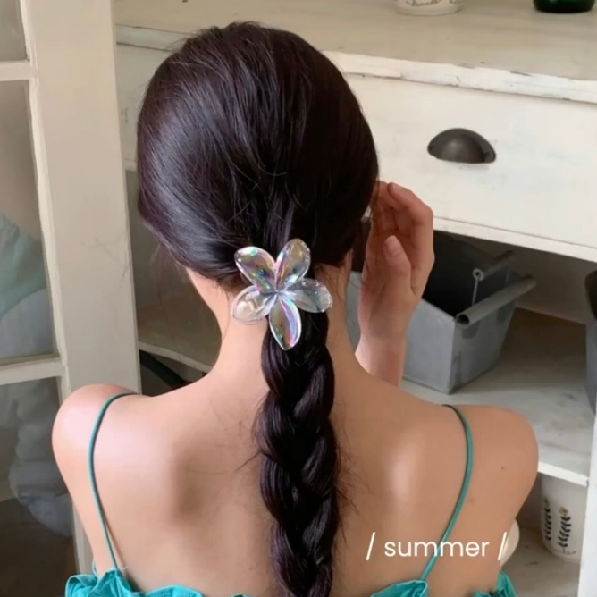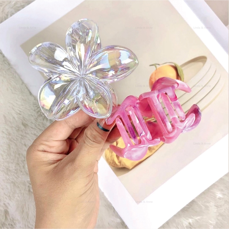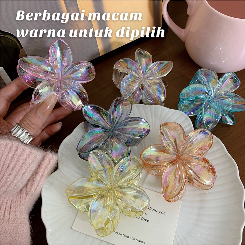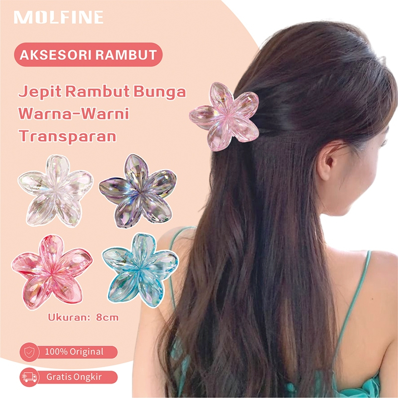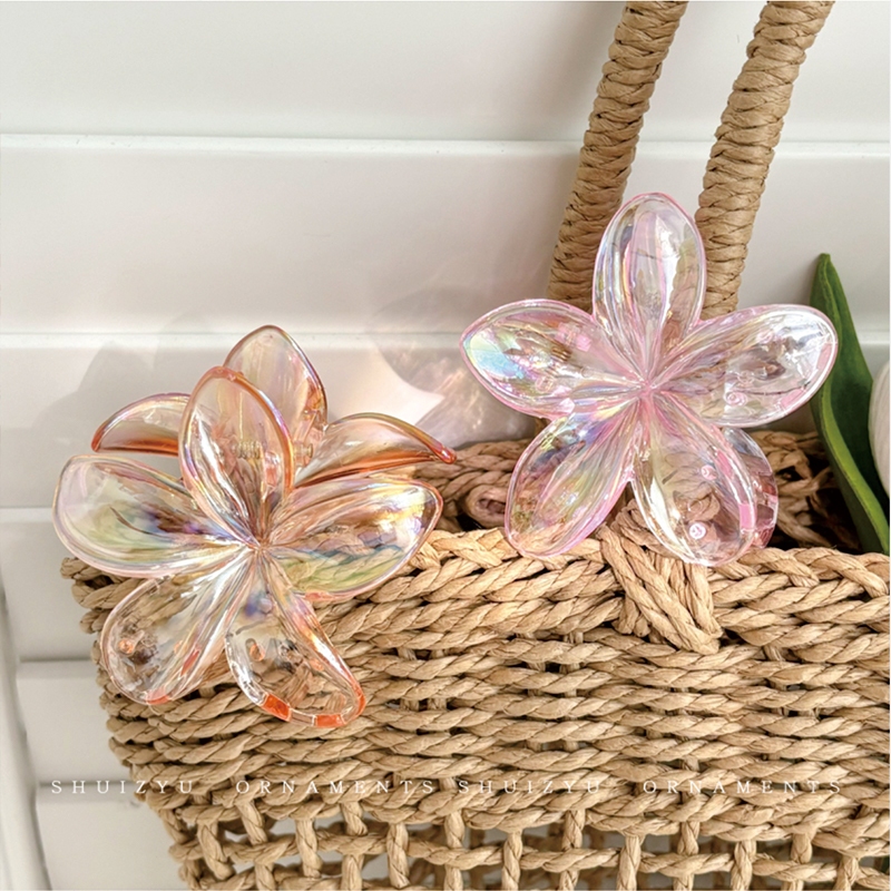 MOLFINE Jepit Rambut Wanita Bunga Kamboja Jepit Rambut Akrilik Liburan Tepi Laut Jepit Rambut Transparan Berwarna-warni 8 CM Jepitan Rambut Anak Perempuan