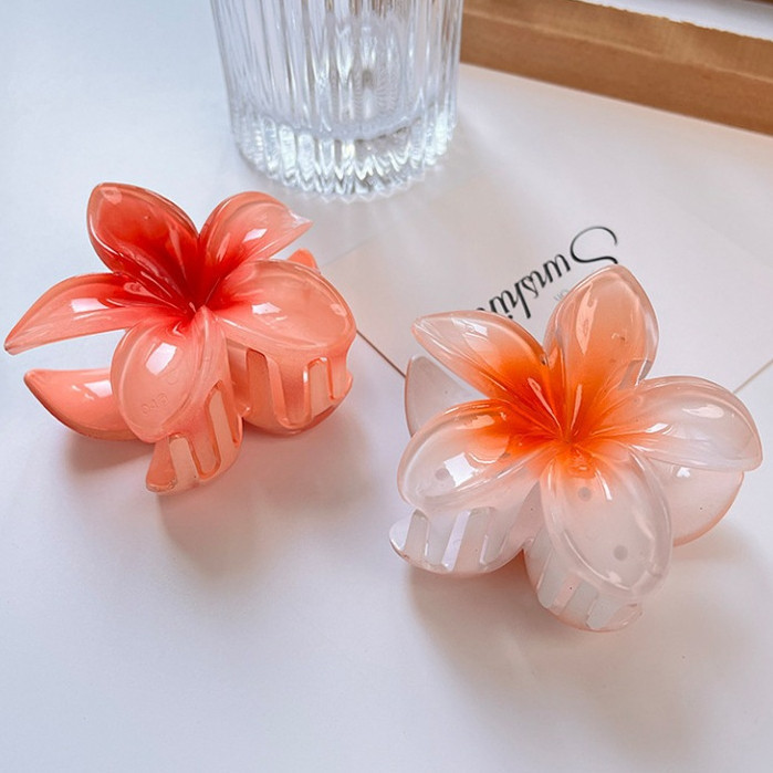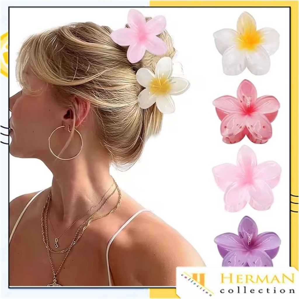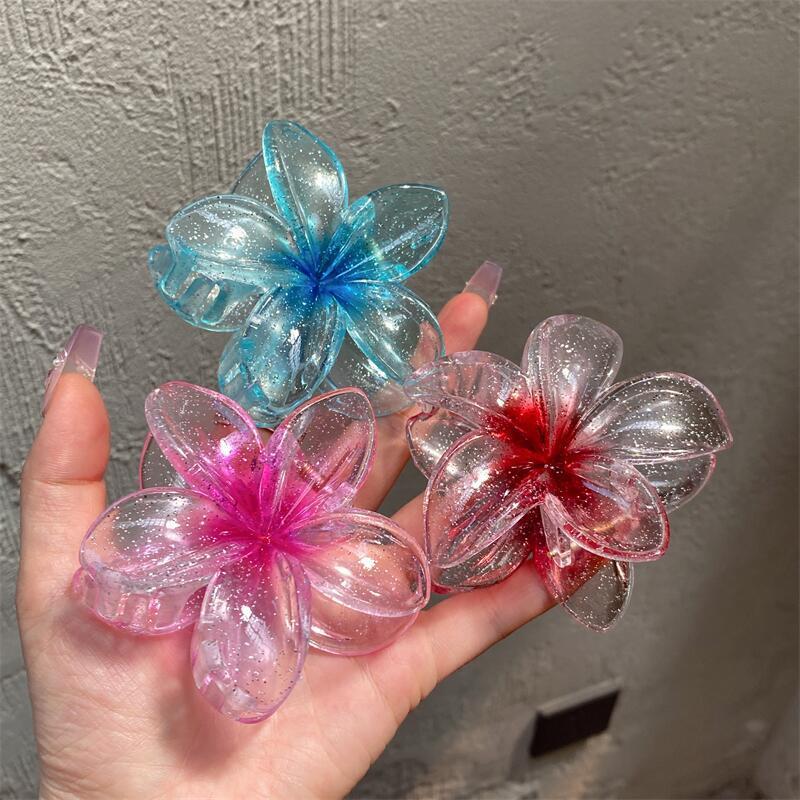 HC Jepitan Rambut Cantik Model Bunga Kamboja Hair Clip Bunga Bali Aksesoris Rambut Wanita Jepit Rambut Plumeria Bunga Kamboja Glitter Transparant Warna Soft