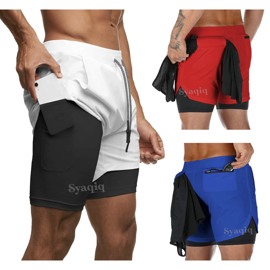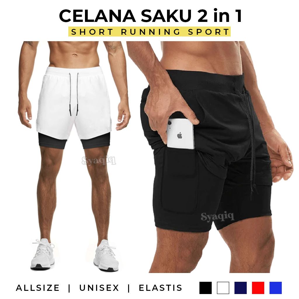Celana Lari Pendek Saku Double Layer Olahraga Futsal Sepak Bola Jogging Badminton Voli