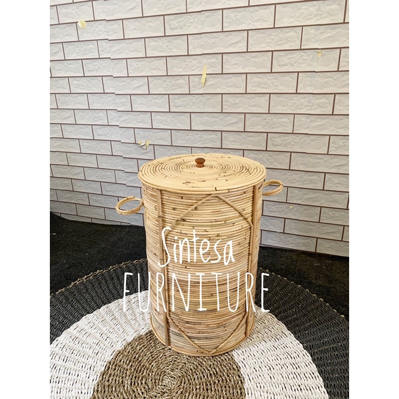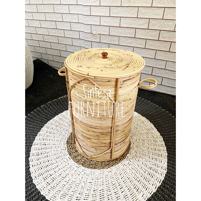 laundry bag rotan alami vintage/wadah pakaian aesthetic/ keranjang baju kotor lucu murah/laundry dengan tutup/ laundry b