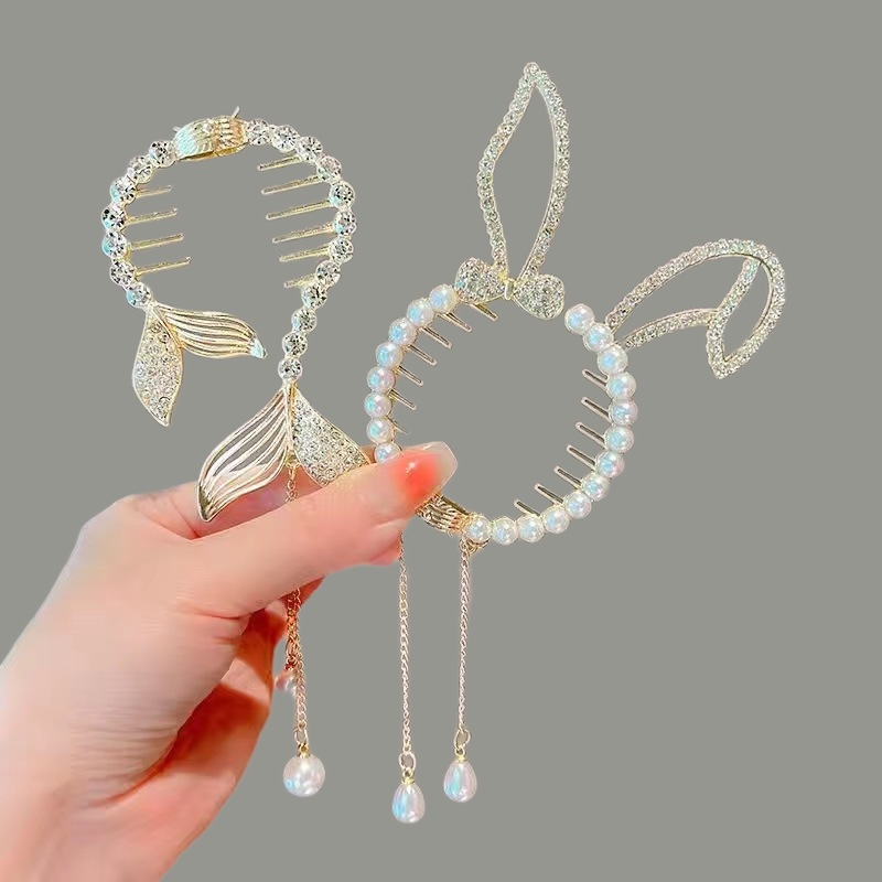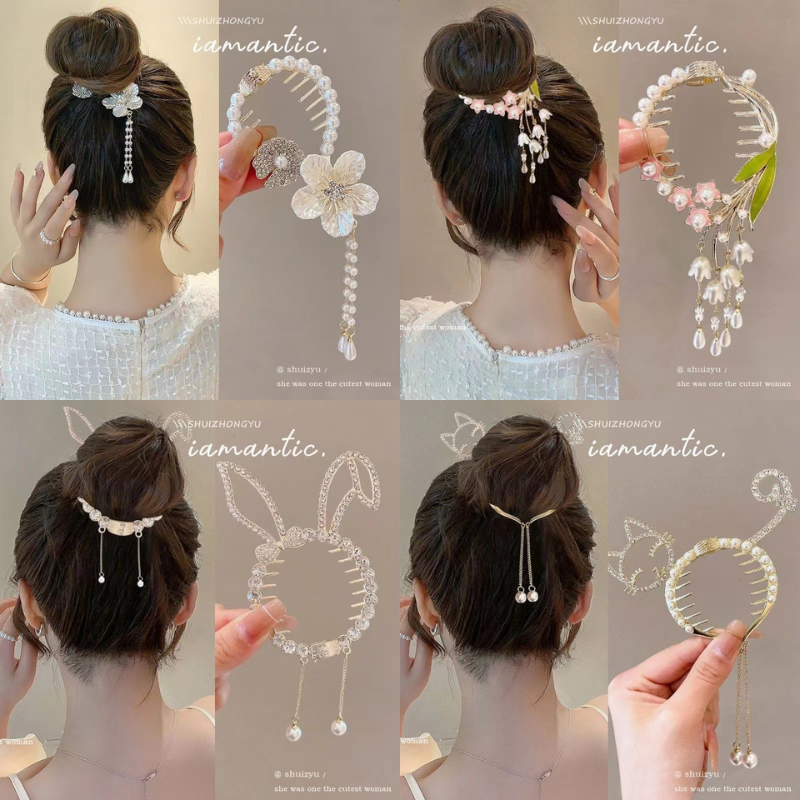 Jepit Sanggul Rambut Wanita dan Anak Motif Berlian Rumbai Mawar Permata Mutiara Gaya Korea Impor Jepitan Aksesoris Rambut ASW Gallery JPT21