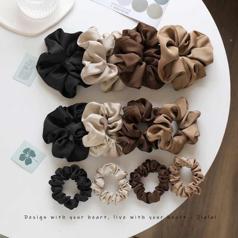 SET SCRUNCHIE SIMPLE EARTHTONE COLOR SILK SATIN SOFT SCRUNCHIES IKAT KARET RAMBUT KUNCIRAN KAIN LEMBUT PITA AKSESORIS KOREA RETRO HIGH END HAIRTIE WANITA CEWEK Y2K
