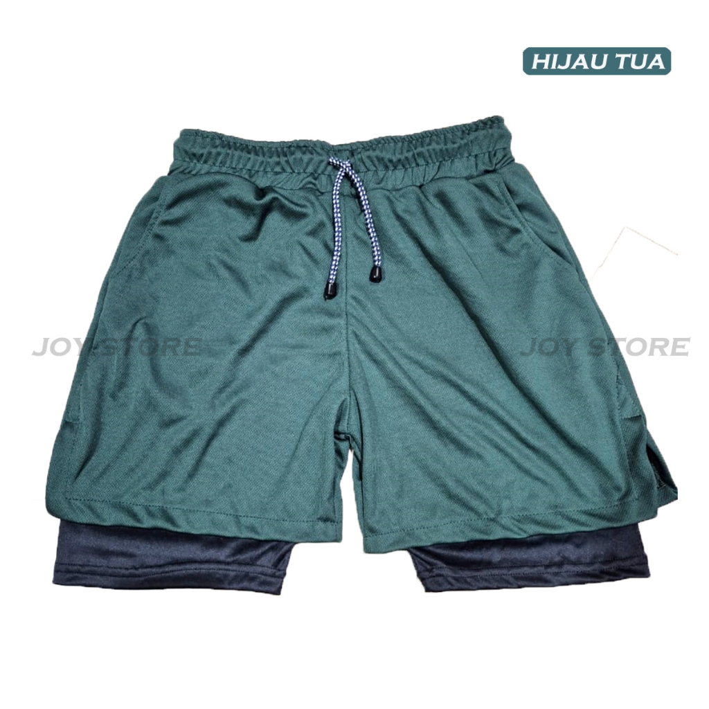 Celana pendek olahraga pria 2 in 1 jogging gym fitness sepak bola running Double layer pria Sepeda