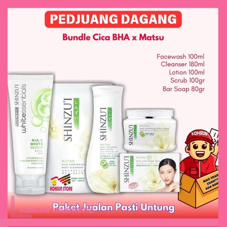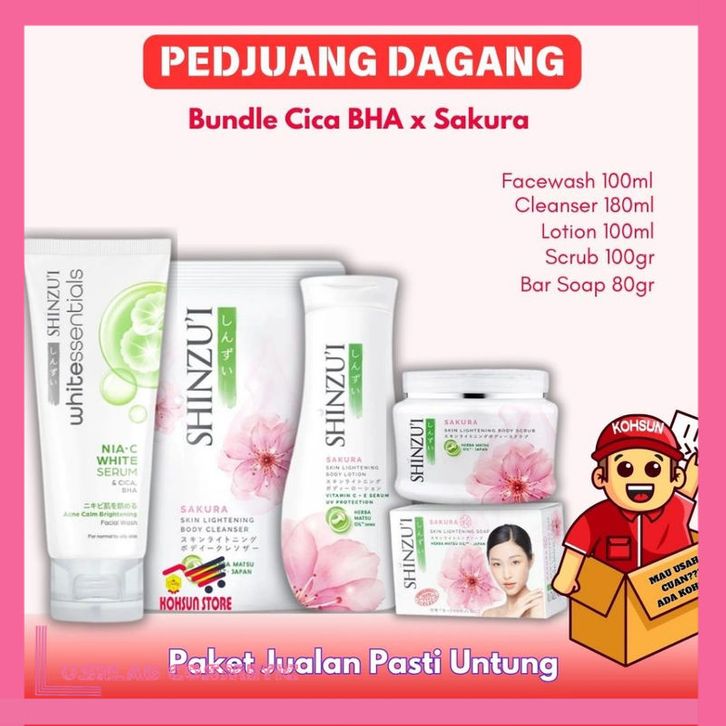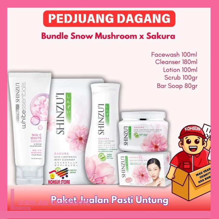Paket 5in1 Shinzui Nia C White Serum Snow Face Wash Cleanser Body Lotion Scrub Barsoap