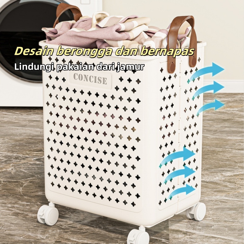 Keranjang Baju Kotor Lipat Keranjang cucian portabel dengan roda Multifungsi
