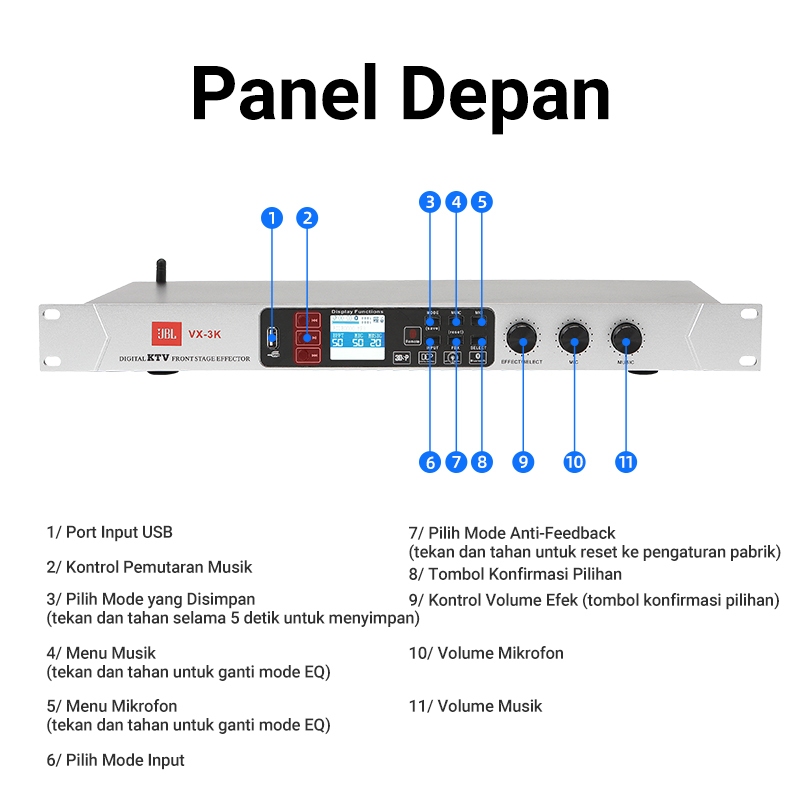 JBL/VX-3K digital Karaoke audio processor (crossover 3 way aktif:2 speaker utama, 1 subwoofer)