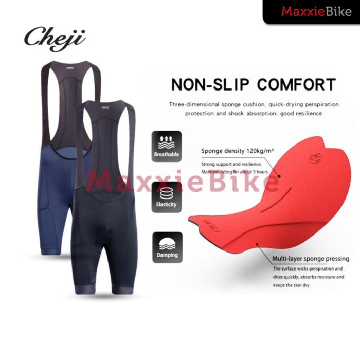 CHEJI CELANA SEPEDA PRIA BIB PENDEK PRO RACE CJ-BART PADDING POCKET-BIB SHORTS MEN PRO RACE CYCLING POCKET HIGH ELASTIC STRETCH - BLACK, XL