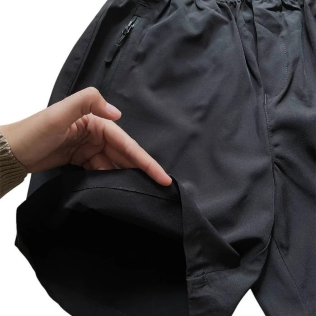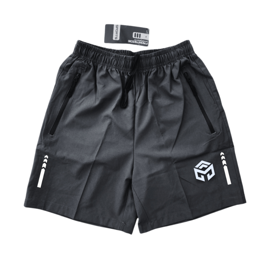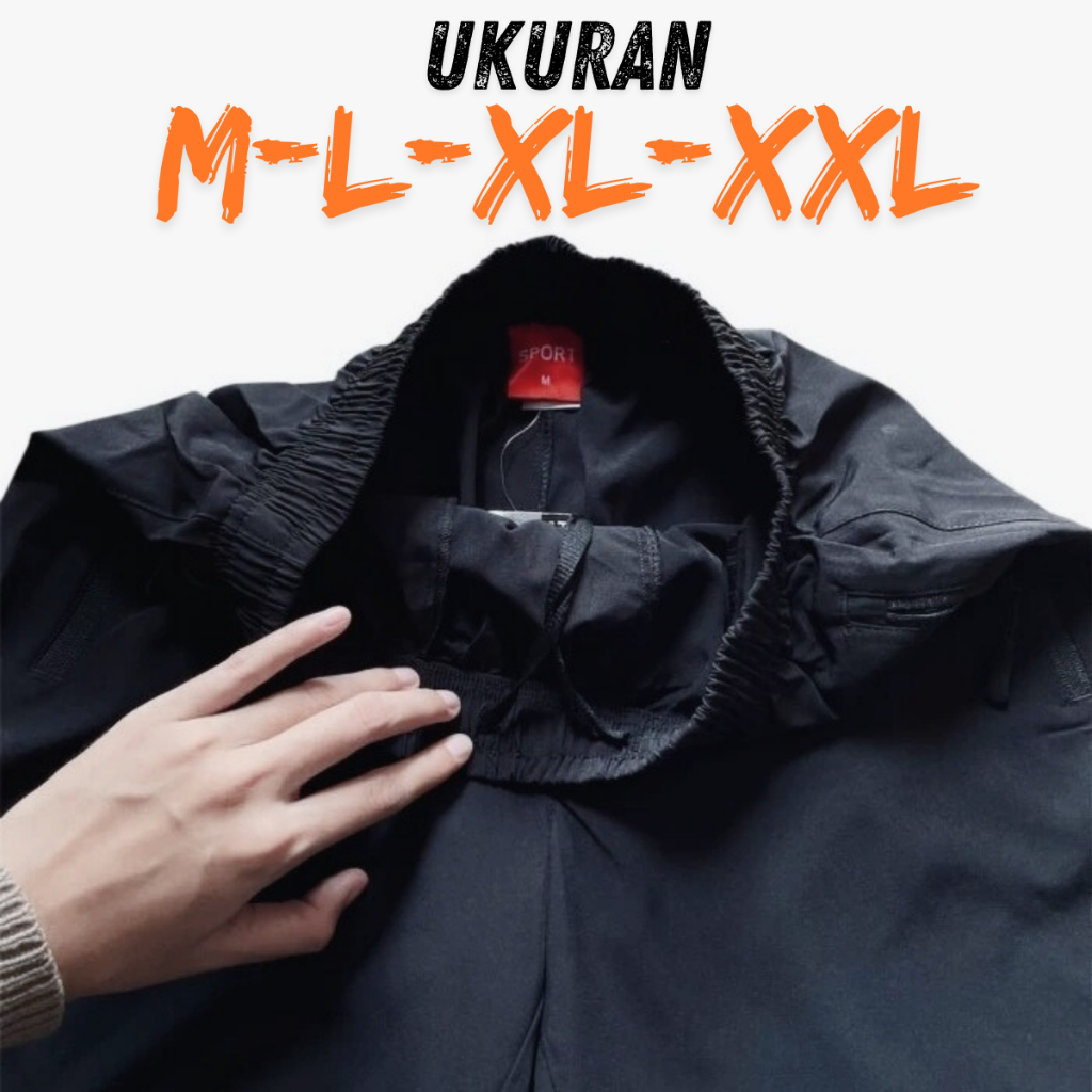 Celana Pendek Parasut Olahraga Saku Resleting Pria Wanita Running Santai Jumbo Polos Hitam