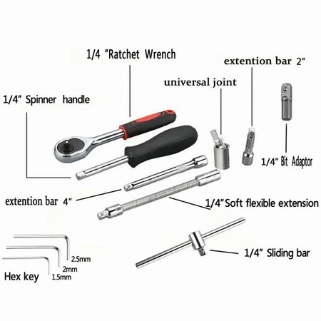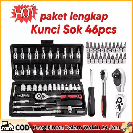 [[PAKET HEMAT]] Set Kunci Sok Kunci Shock 46 pcs Mobil Motor Lengkap Socket Tool Kit set Pas Ring Motor Mobil
