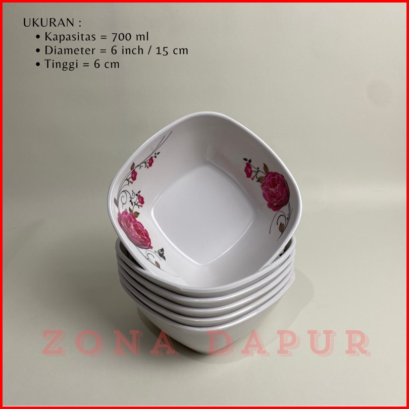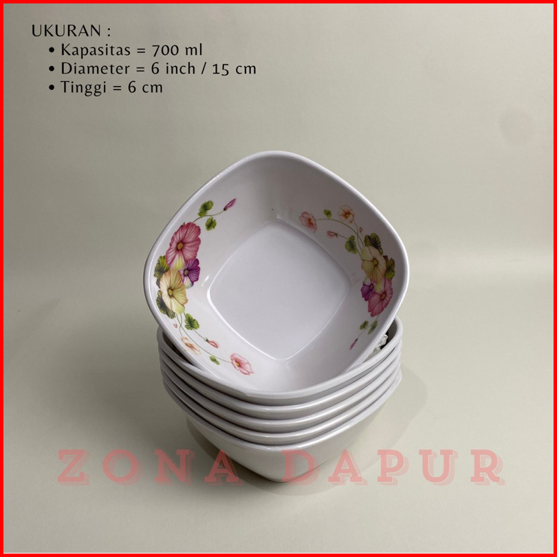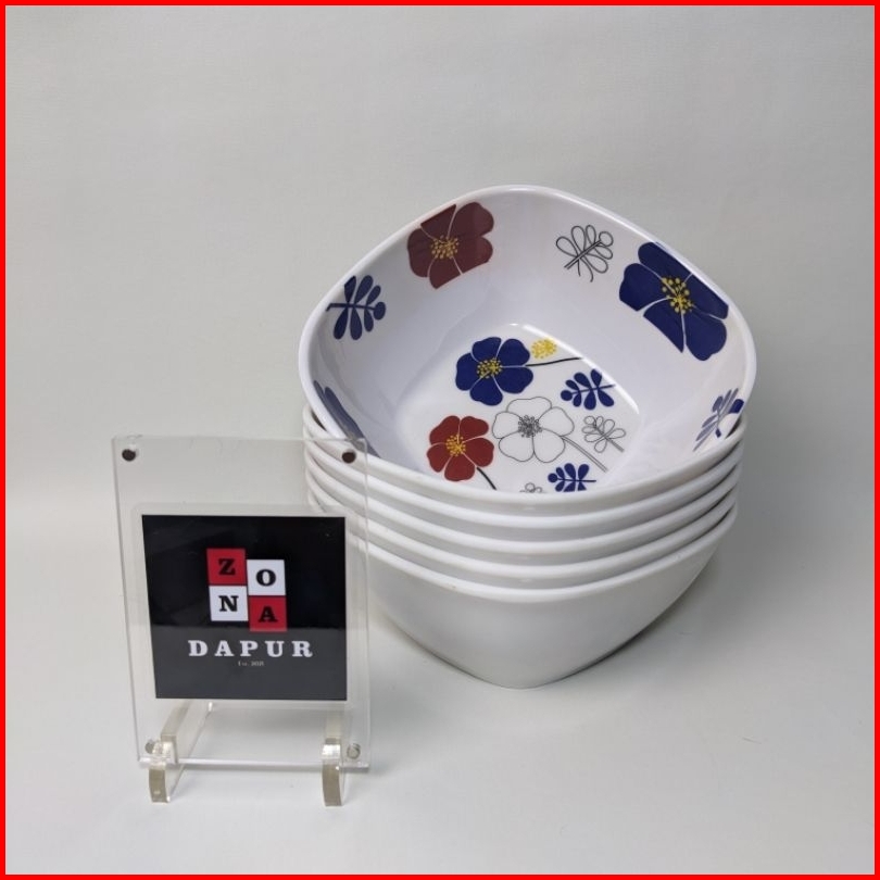 6 Pcs 1 Lusin - Mangkuk Melamine Motif Kembang 15 5 Cm Mangkok Melamin Persegi Alat Saji Peralatan Makan Serbaguna