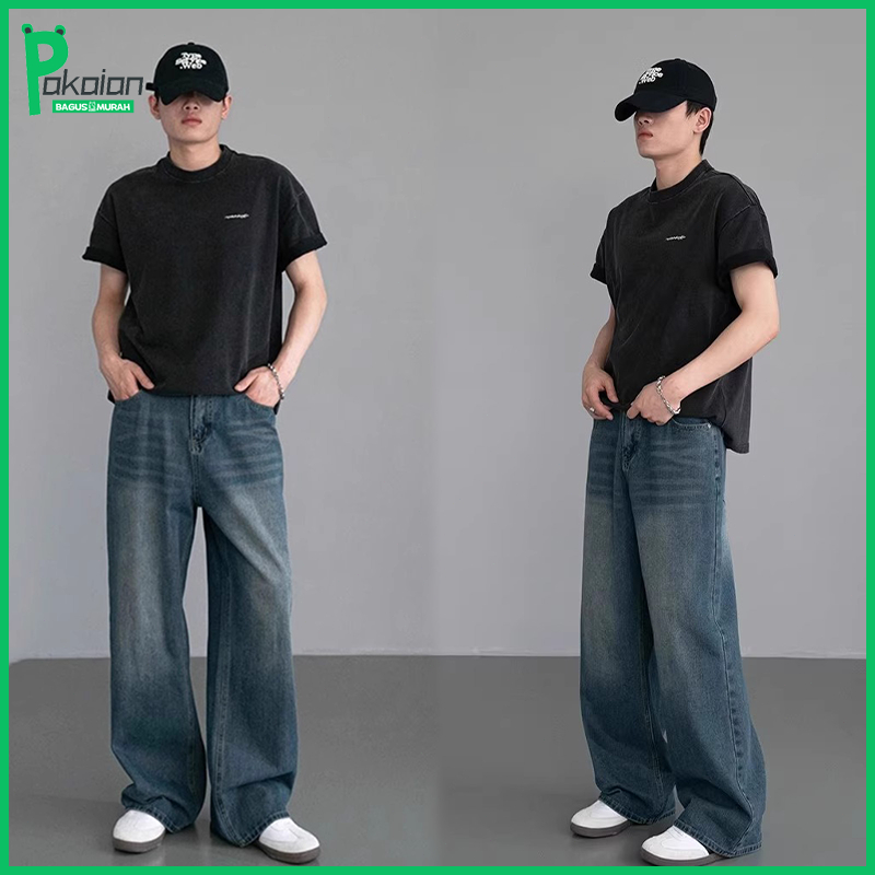 Jeans biru retro Celana Unisex Celana jeans pria celana panjang pria baggy jeans pria jeans kulot celana korean style pr