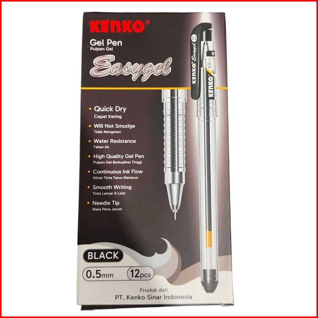 Kenko Pulpen Easy Gel 0.5mm Biru Hitam Harga Per Lusin