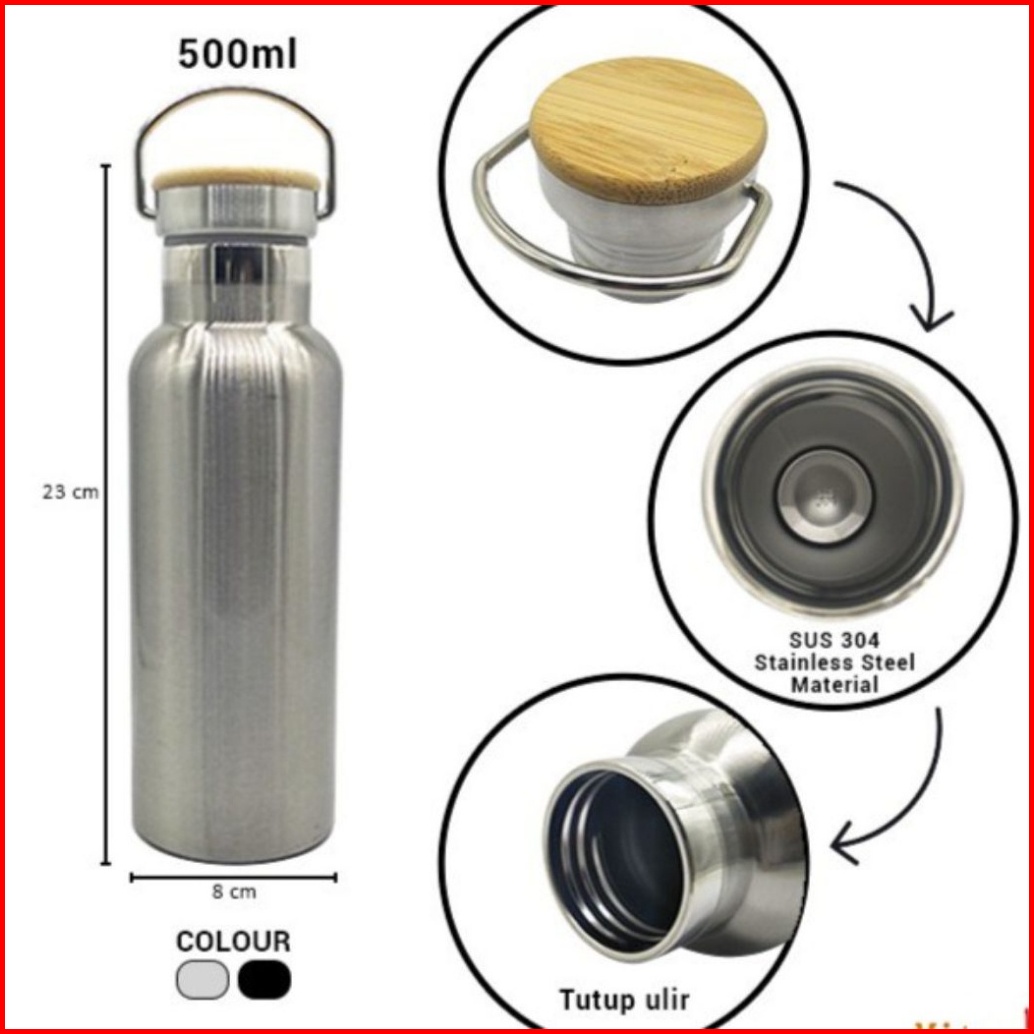 Termos Stainless Steel 304 Tutup Bambu 500ml Tumbler Arizona Stainless Steel Tahan Panas H599