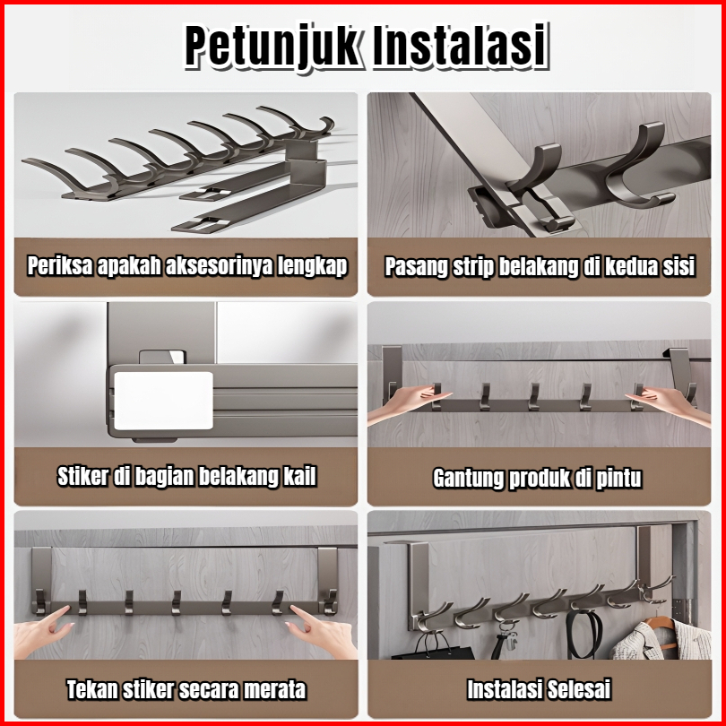 Gantungan Baju Pintu Alumunium Rak Tanpa Paku Kuat Dinding Besar Tebal Premium Gantungan Kamar Tidur Kamar Mandi Door Ho