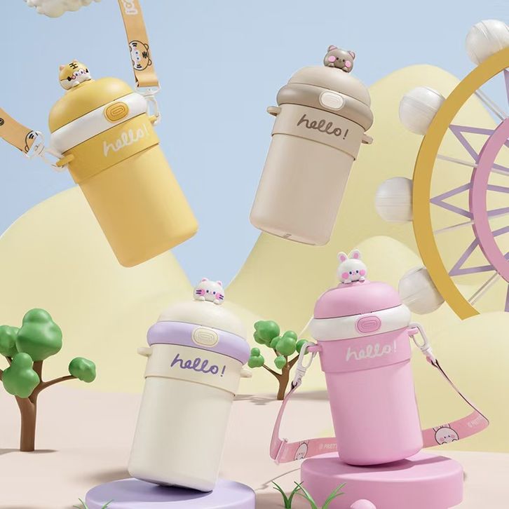 VOOVA Mug Cup Kartun/ Gelas Tumbler Gelas/ Tumbler Kopi/ Cangkir Kopi/ Gelas Dengan Sedotan Ada Tali Selempang/ Tumbler