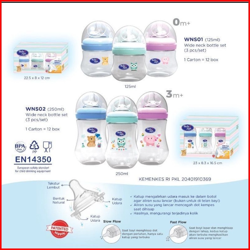 Baby Safe Botol Susu Anak Wideneck Milk Flow System 125ml 250ml Motif Gambar Polos Wn01 Wn02 Wn04 Wn05