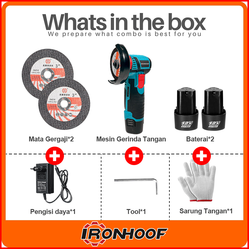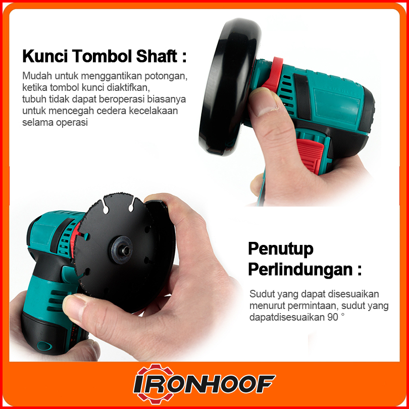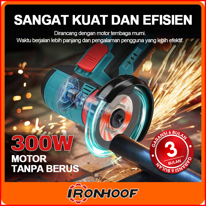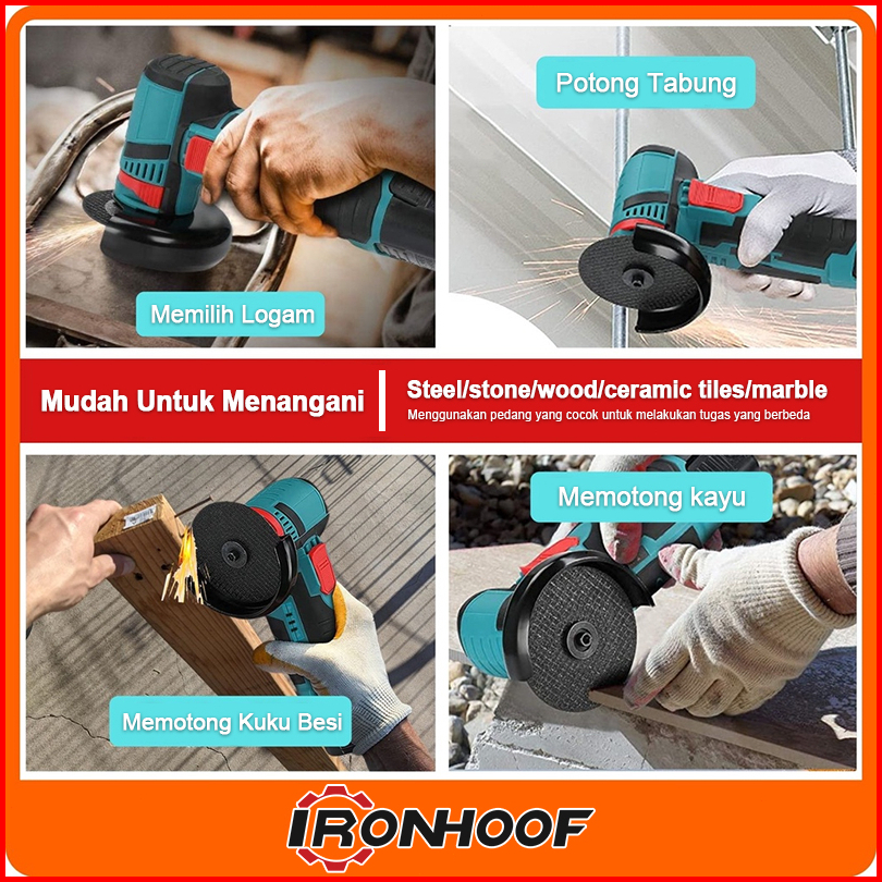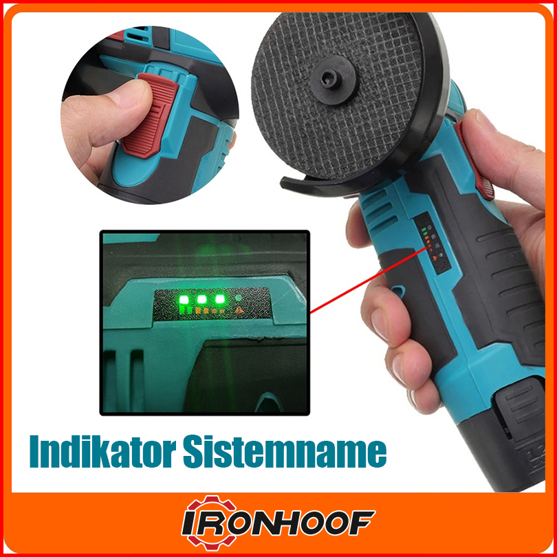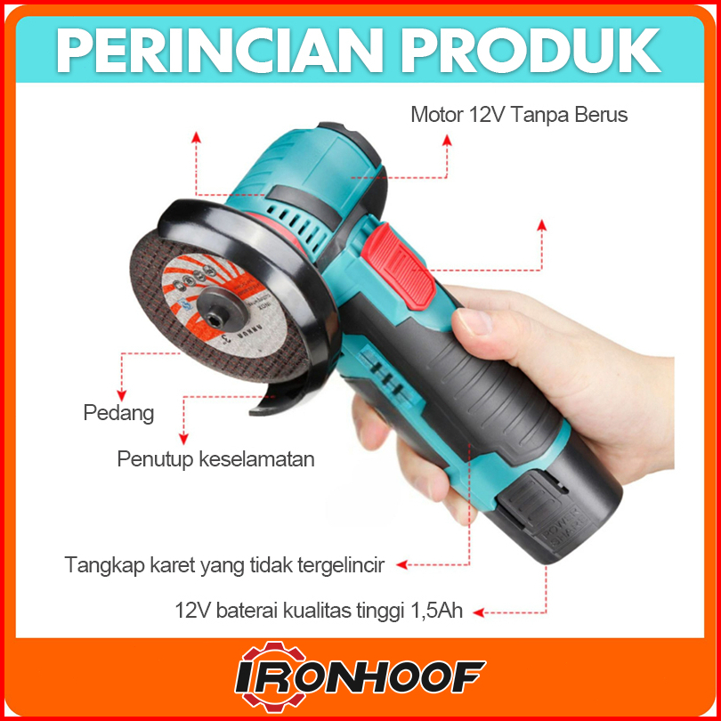 Ironhoof Mesin Gerinda Tangan Angle Grinder 12v Mesin Gurinda Ryu 3inch Mini Baterai Mesin Gurinda Ryu Brushless Recharg