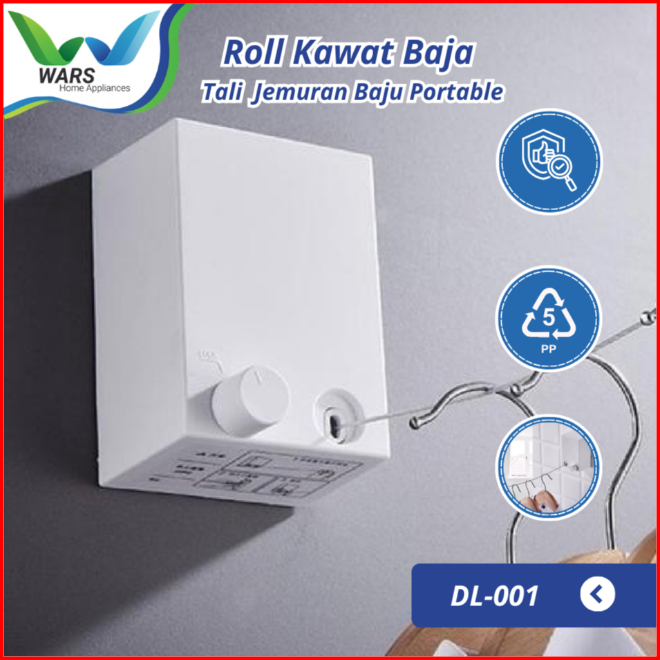 Wars Roll Kawat Baja Retractable Clothesline Tali Gantungan Jemuran Baju Portable Indoor Minimalis