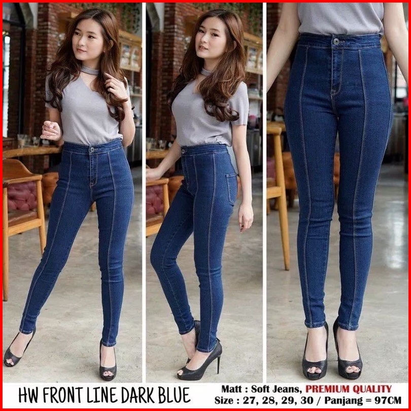 Celana Hw Jeans Wanita Pinggang Tinggi Model Garis Depan Celana Hw Tulang Celana Highwaist Jeans Front Line