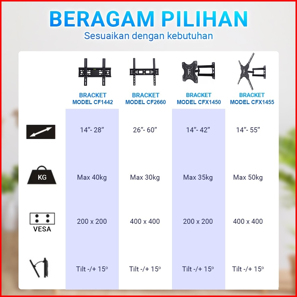 Finito Bracket Tv 43 40 32 29 24 21 17 Inch Kokoh Full Besi