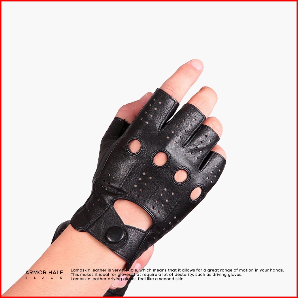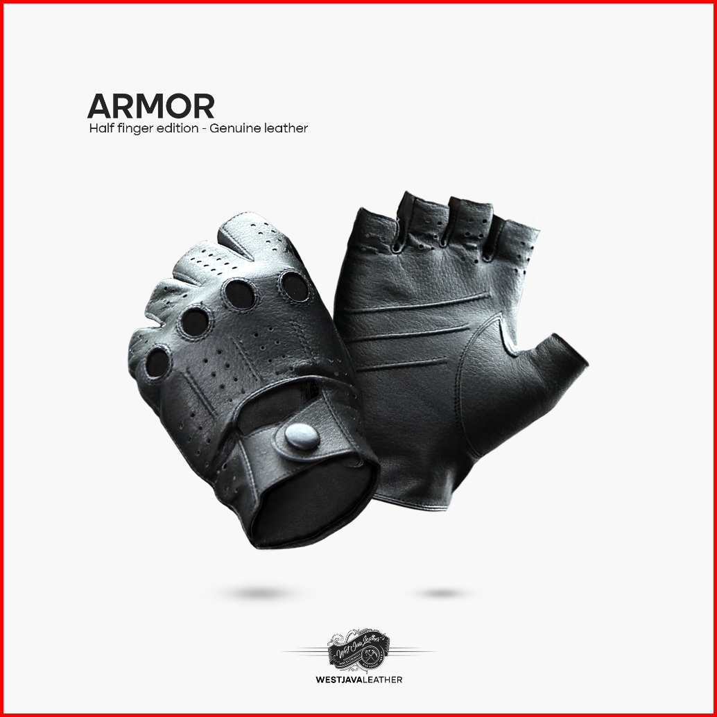 Wj Leather - Sarung Tangan Motor Kulit Setengah Jari Armor