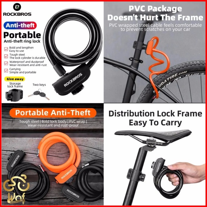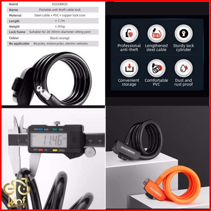 Rockbros Rks515 Kunci Gembok Sepeda Motor Helm Bicycle Helmet Bike Lock Chain Bracket Rks 515
