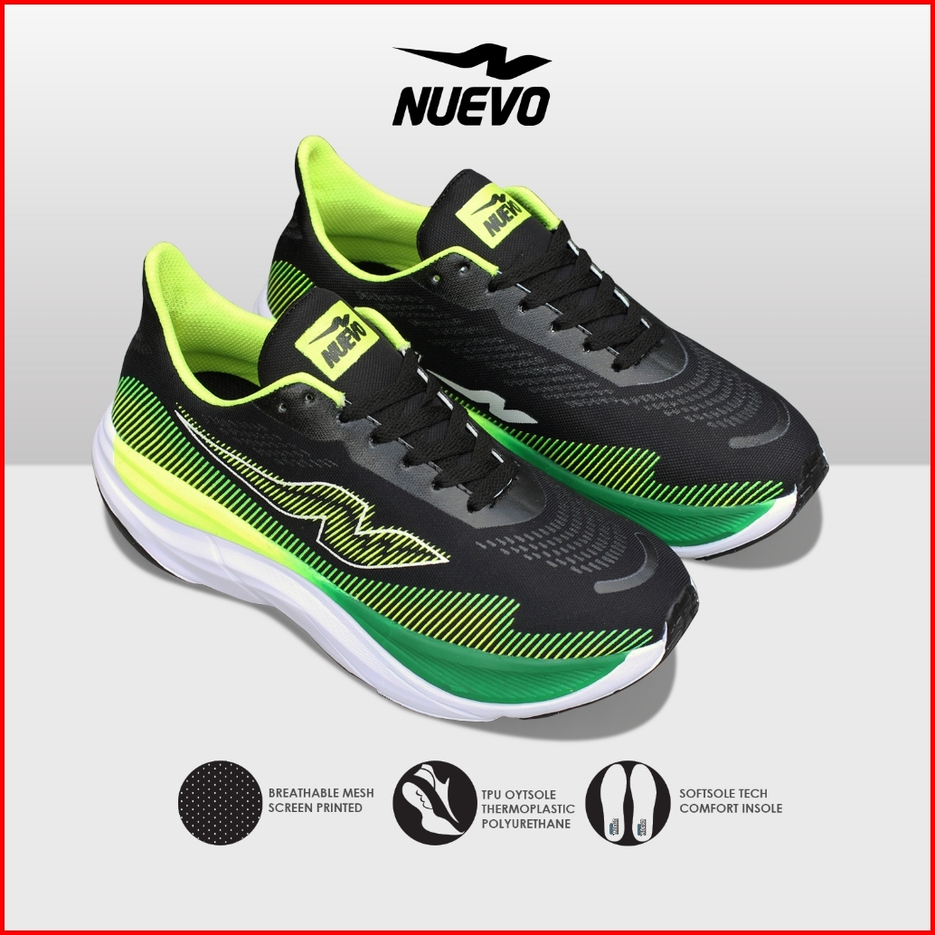 Nuevo - Sepatu Lari Jogging Sneakers Olahraga Lari Running Santai Hitam Hijau Murah