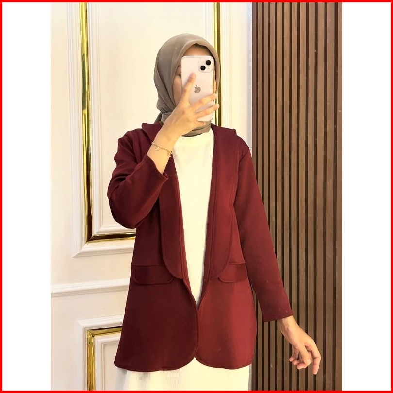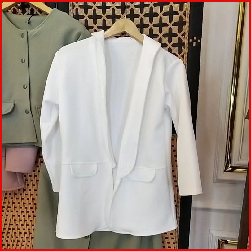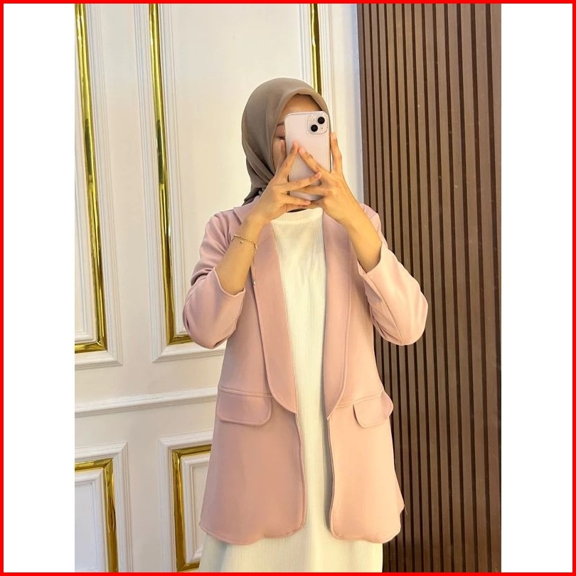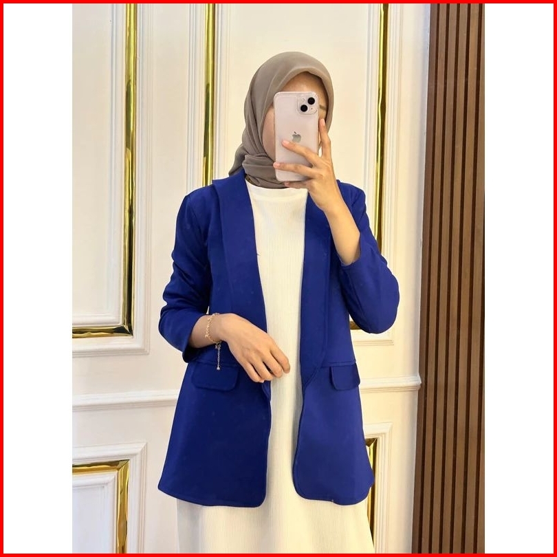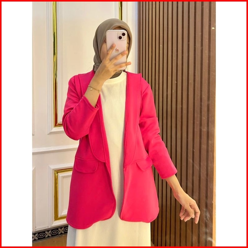 Blazer Scuba Premium Long Blazer Tanpa Kancing Wanita Kekinian
