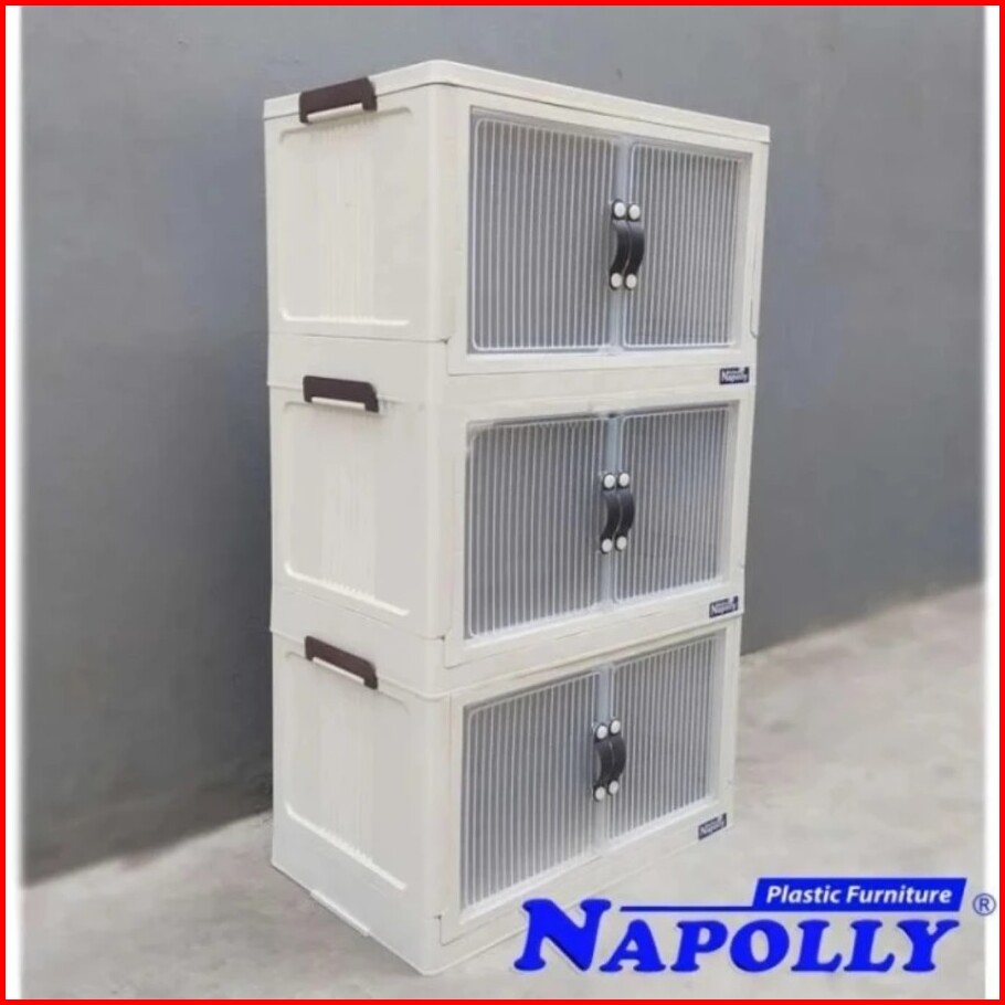 Lemari Plastik Napolly Rak 3 Susun Lipat Serbaguna Bisa Ditumpuk Rak Apartemen Polibox 346 Murah