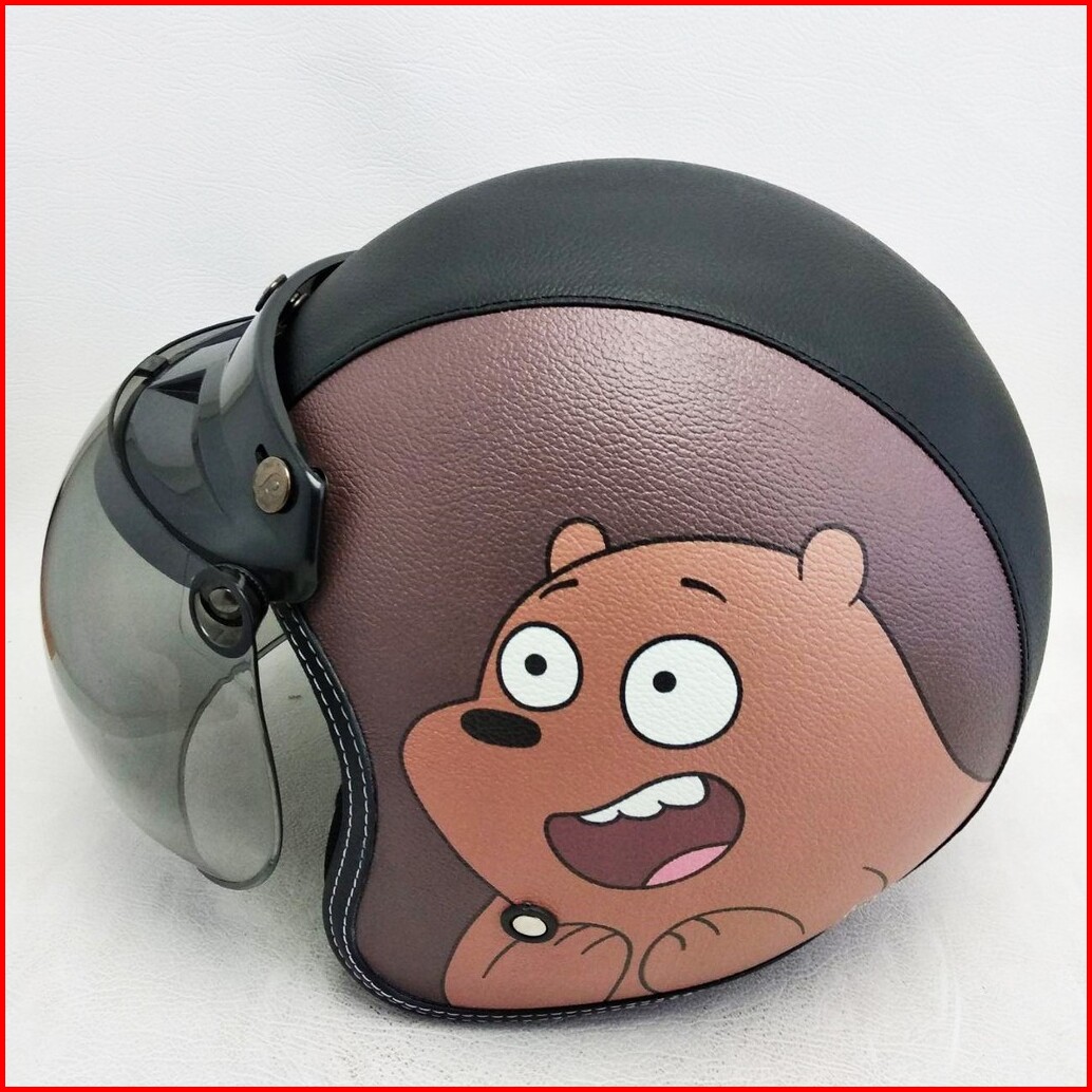 Helm Bogo Retro Kulit Motif Brown Grizz Bear Klasik Kaca Bubble Halfface