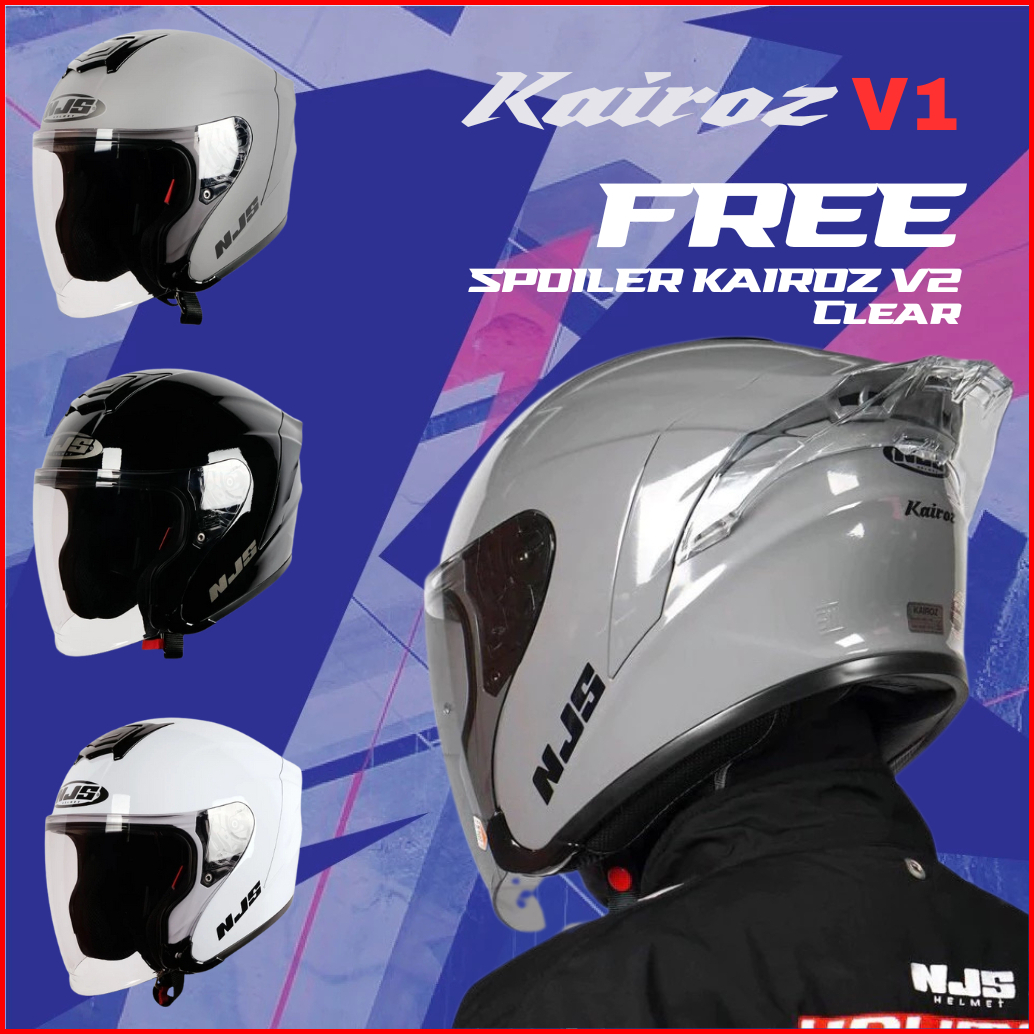 Helm Half Face Njs Kairoz Polos Free Spoiler V2 Clear