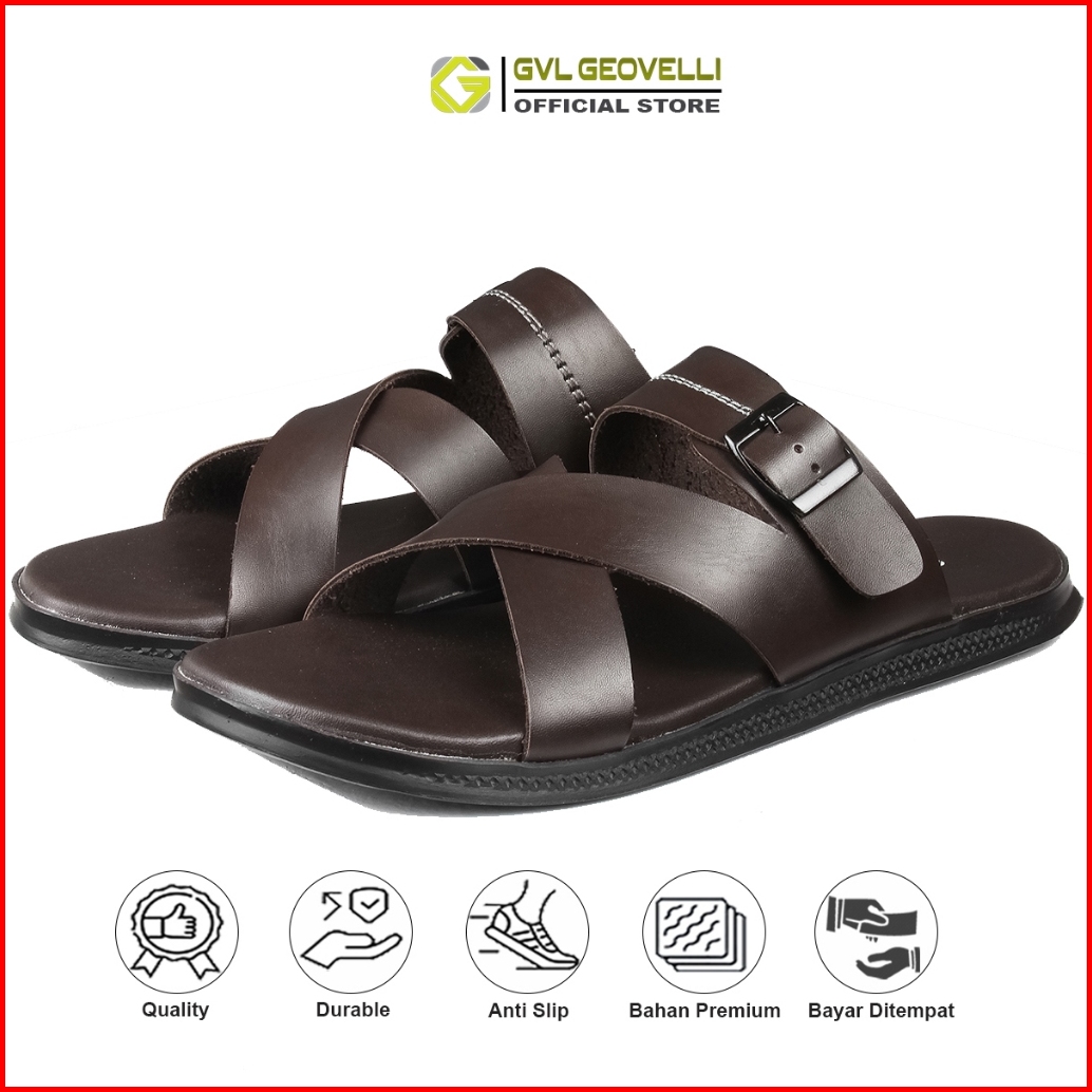 Gvl Geovelli G-1984 Marco Sandal Pria Slide Coklat Gesper