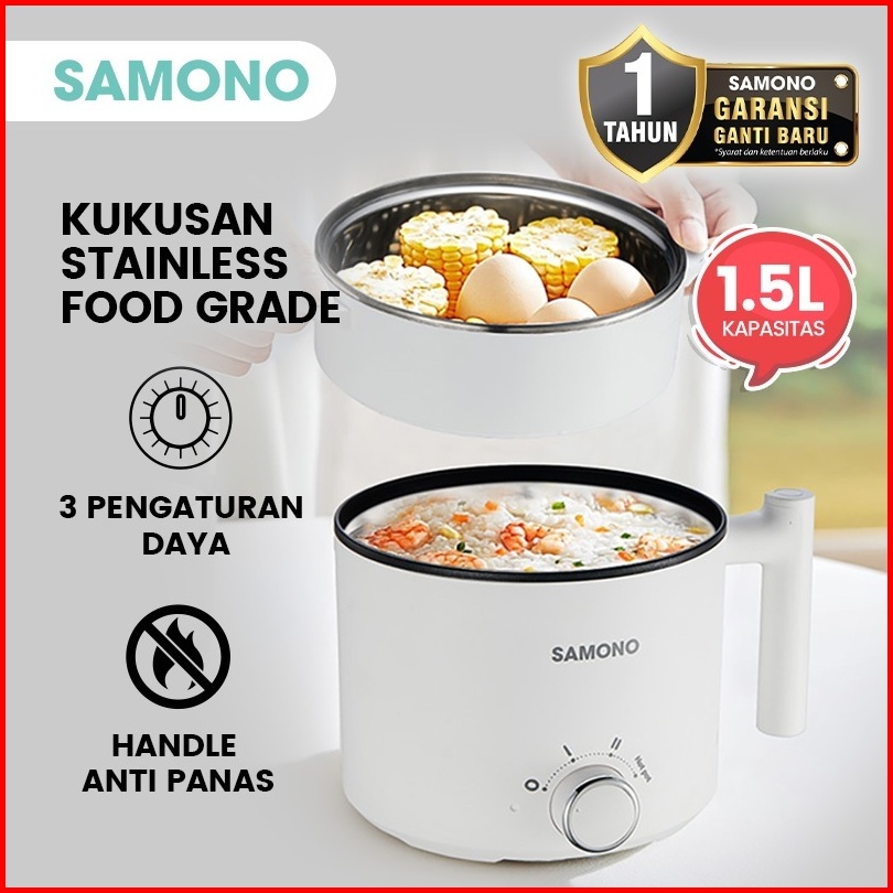Samono Panci Listrik Merebus Memasak Mengukus Kukusan Stainless Steel Food Grade 1 5 Liter Sw-dg04s Low Watt 150 Watt An